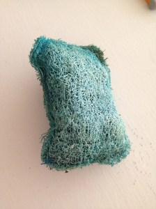 I’ve tried microfiber, I tried this adorable gem from a farmer’s co-op (thanks Mary!), and I’ve tried Trader Joe’s cellulose sponges. Fine to clean off a non-sticky item, but when it comes to the hard stuff (even if I soak it), fail, fail, fail.